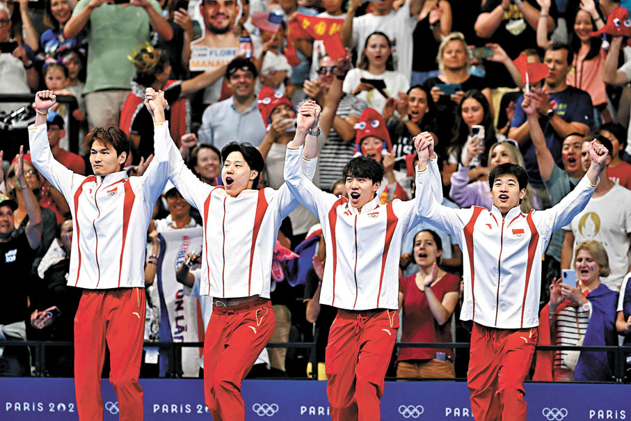 香港文匯報訊 中國泳隊於巴黎奧運再創歷史!當地時間8月4日晚(香港時間5日凌晨),在2024年巴黎奧運會男子4×100米混合泳接力決賽中,由徐嘉余、覃海洋、孫佳俊、潘展樂組成的中國隊以3分27秒46的成績奪得金牌。這是中國隊第一次站上這項目的奧運領獎台,並終結了美國在這一項目40年的壟斷。