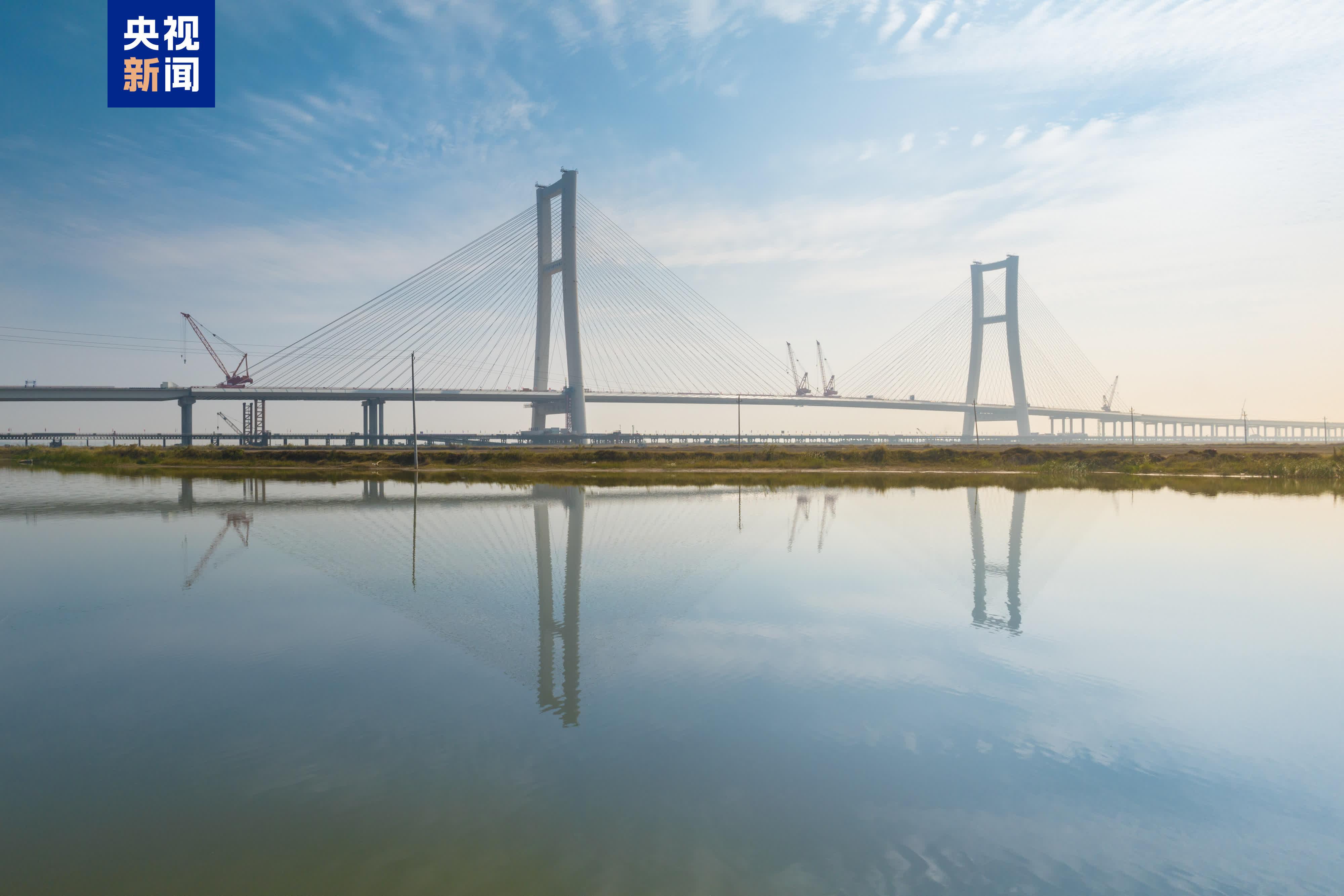 其中,大橋主橋長1010米,為雙塔雙索面組合樑斜拉橋,主塔高182米、主跨520米、橋寬51.5米。主橋共101個鋼混組合樑節段、184根環氧塗層斜拉索,抗拉強度為1960兆帕。主橋施工前,項目制定了高標準的線形、索力、應力等監控控制指標,搭建斜拉索施工數字管理平台,實時監測張拉索力數據,每五個節段總結分析。目前,斜拉索施工精度達千分位級,主樑施工實現相鄰段高差8毫米、主樑軸線偏位10毫米、高程誤差10毫米的高精度合龍,各項精度指標均高於國家現行規範要求。
