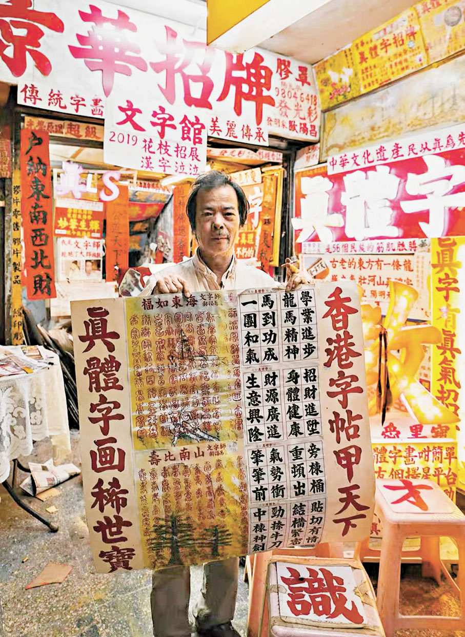 香港招牌製作師傅歐陽昌被尊稱為「文字師」,他以北魏體作變體的真體字書法而著名,同時亦發明仿石紋物料發光彩。若要追溯的話,已經是40多年前,那時候的歐陽昌年輕,來到香港便以字謀生,店舖於北角駐紮長年。早年歐陽昌的字畫店以招牌為主,全盛時期有工廠,員工亦有30來位,可見全然是一種商業運作。據網上資料看來,直至2020年時全港仍有過千招牌出自他手筆,可見規模之大。近些年店舖沒有了,說來可惜,但其實也不過是一種社會發展的自然流失罷了。爾後歐陽昌遷往元朗,中間有有心人要他出山到上水一間店舖寫字、寫揮春,但中間幾經波折,亦因不堪經營又再作罷。