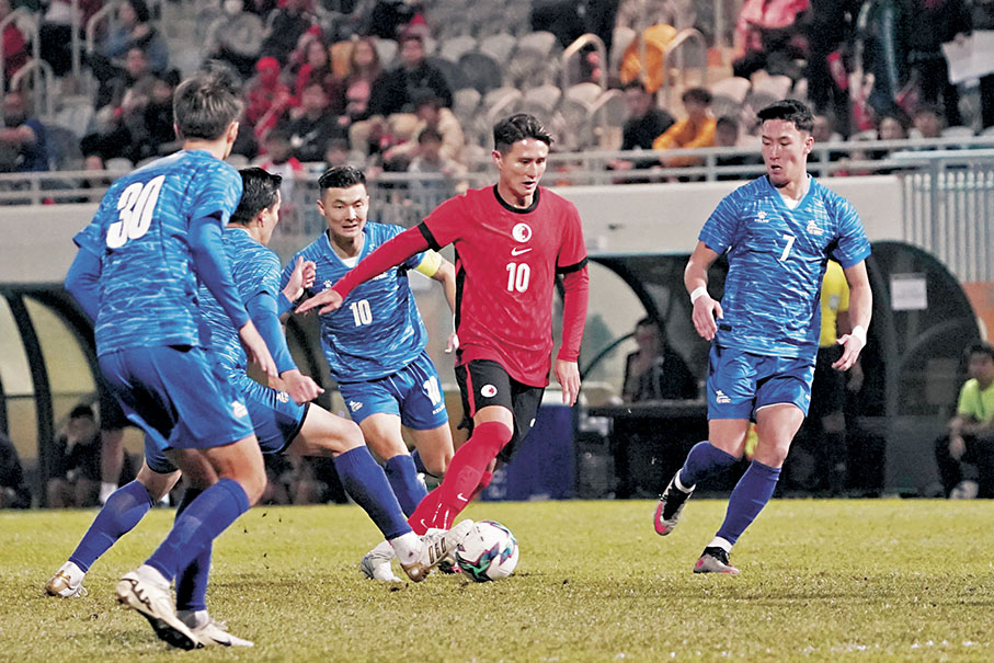 港隊昨日在旺角大球場迎戰蒙古,門將葉鴻輝正選上陣,成為香港足球史上首位在國際賽出場次數達100次的球員。另外首次為港足正選上陣的尼高拉斯,與周緣德、鍾樂安、徐宏傑組成4人防線,艾華頓、安永佳、祖連奴在前線合力攻堅。