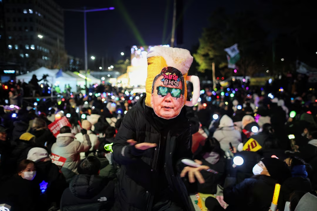 12 月 11 日,韓國首爾國民議會前,一名抗議者參加要求彈劾韓國總統尹錫悅的集會 路透社