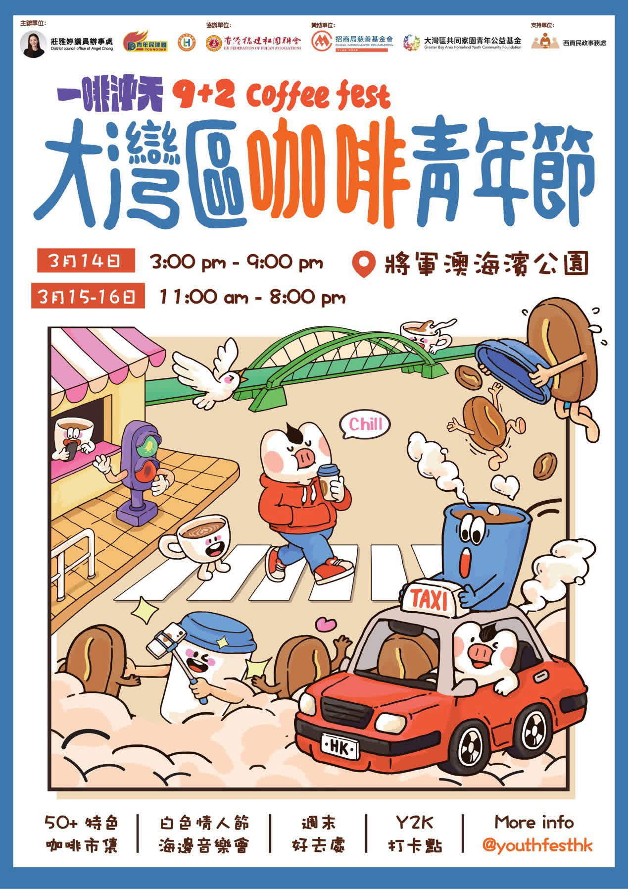 將於本周五至日(3月14-16日)一連三日在將軍澳海濱公園舉行「大灣區咖啡青年節」。負責主辦活動的青年民建聯副主席、西貢區議員莊雅婷今日(12日)與傳媒茶聚透露,屆時將有多名政府官員出席,包括保安局局長鄧炳強、商務及經濟發展局副局長陳百里、入境事務處處長郭俊峯等,期望市民及旅客屆時可到場參與,入場人士有機會獲得一個紀念杯。