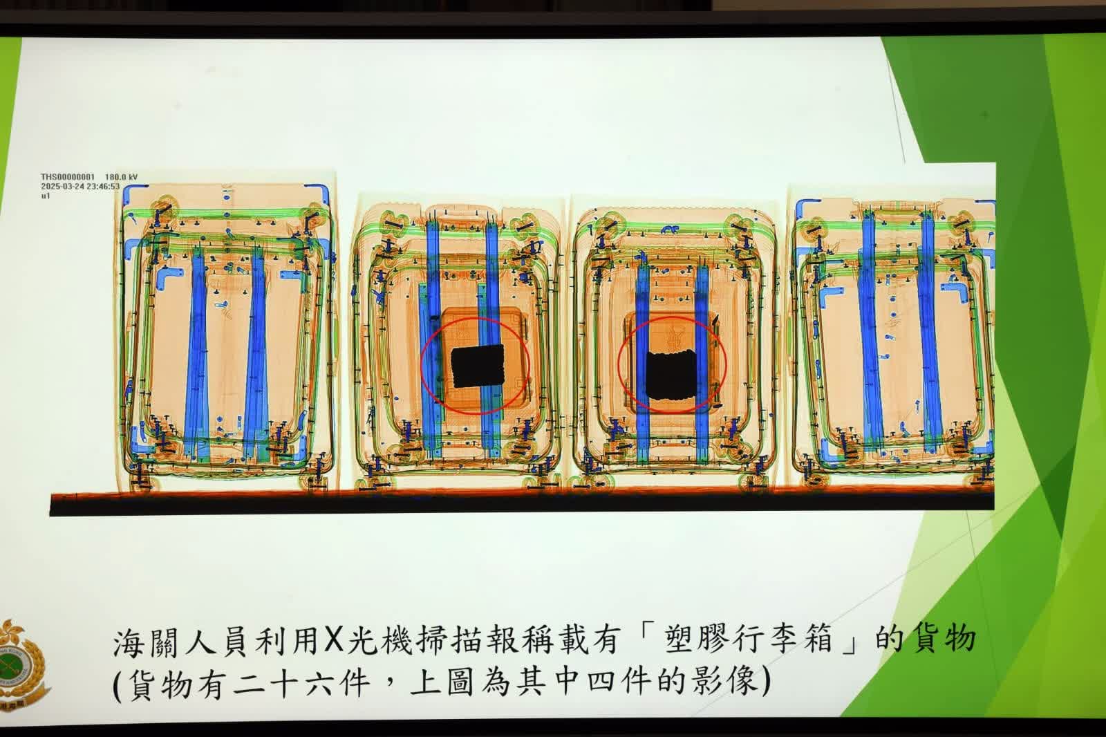 香港海關機場科空運貨物第三組高級督察葉健生稱,本月5日人員在香港國際機場偵破一宗企圖空運走私64公斤、市值4600萬元金條到日本的案件後,本周二(25日)凌晨,人員根據風險評估及情報分析,在機場海關驗貨場查驗一票準備由香港出口往日本,報稱共26箱載有塑膠行李箱的空運貨物時,經X光機掃瞄,發現當中14箱的影像有異,每箱實際重量超過23公斤,與報稱的每箱10.4公斤相差甚遠。