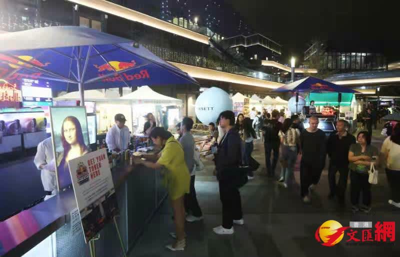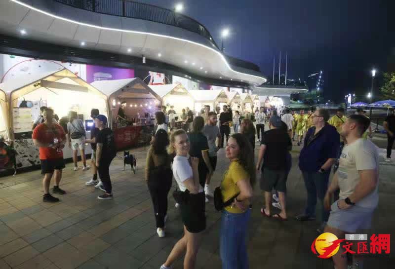 啟德體育園、主場館旁的美食海灣嘉年華,不少球迷在看完比賽之後前往品嘗美食,現場有來自不同國家的美食聚集,嘉年華檔主、掌門精釀啤酒負責人梁先生認為,比賽的首日無法預測具體的銷售情況如何,但截至到今日下午,已有大約三分之一的啤酒售出,銷量尚算客觀,相信晚上環境會更熱鬧,生意更好。被問到是否擔心主場館內的酒吧搶生意,他認為主場館內的酒吧主要售賣商業型的酒,而自己的酒主打是手工類,兩者是不同的賽道,不同的消費群體,因此無需擔心。