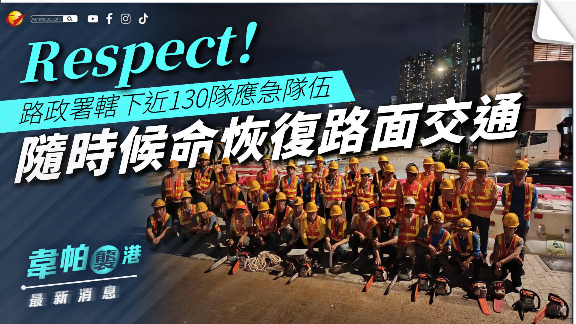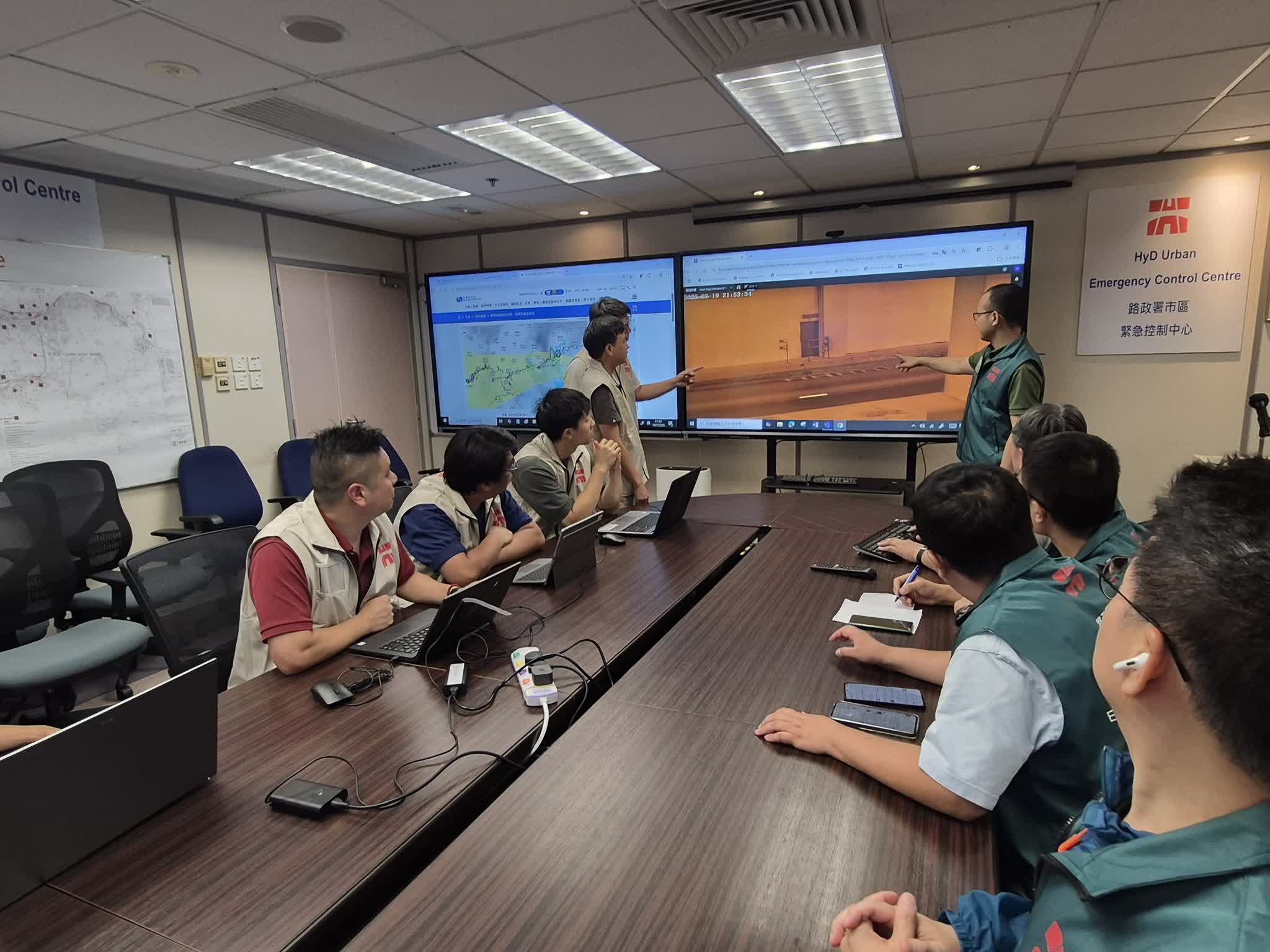 路政署於社交平台發文,指緊急控制中心運作期間,路政署人員會聯同道路維修保養承建商實時監察主要公共道路的最新情況,迅速應對及安排處理道路突發事件。該署轄下接近130隊應急隊伍會隨時候命,在不同天氣狀況下按需要和安全情況儘快出動巡查主要道路,清理道路上的塌樹、障礙物及淤塞的道路集水溝和渠道,以及為倒塌的斜坡進行緊急圍封及搶修工程等,以期盡快恢復主要公共道路的路面交通。