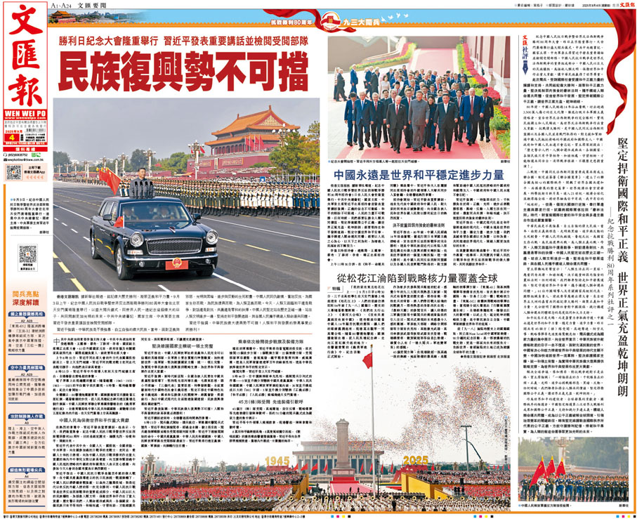 香港文匯報訊 本次九三閱兵不僅在亞洲地區引發高度關注,也成為美國主流媒體與政界的重要觀察對象。根據海南大學「一帶一路」研究院大數據挖掘和分析發現,美國《紐約時報》、《華爾街日報》等具有廣泛影響力的媒體對閱兵活動有一些正面報道。部分報道指出,3日舉行的閱兵式展現了中國軍隊的高度協調能力與戰略力量,超過1萬名官兵與數百件現代化軍事裝備沿長安街參與了這場盛大儀式。媒體普遍認為,此次閱兵不僅是對歷史的莊嚴紀念,更向國際社會,特別是西方國家,釋放出「中國崛起不可阻擋」的戰略信號。大量網民亦在社交媒體上對「中國精神」表達尊敬與讚賞。