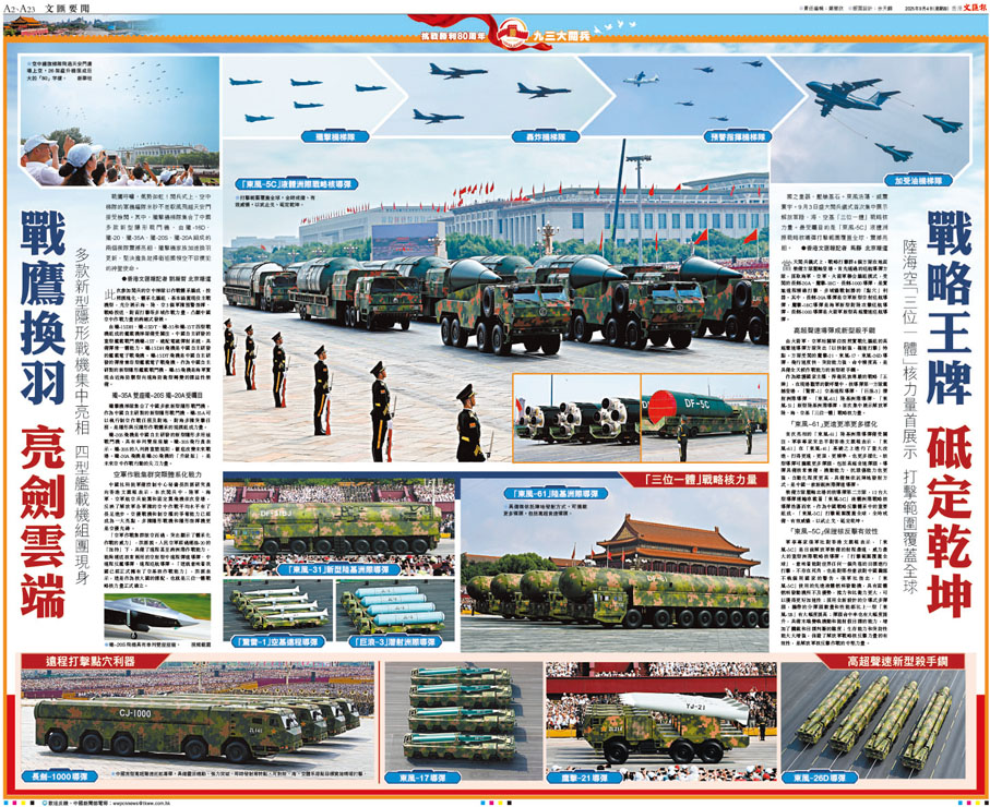 然而,部分美國媒體則持不同觀點,將中國在閱兵中集中展示新型軍事裝備與前沿科技視為一種潛在的「武力警告」,並表達對中國軍事現代化步伐的擔憂。這類報道認為,中國軍事科技的快速發展可能對西方長期以來所維持的軍事技術優勢構成挑戰。