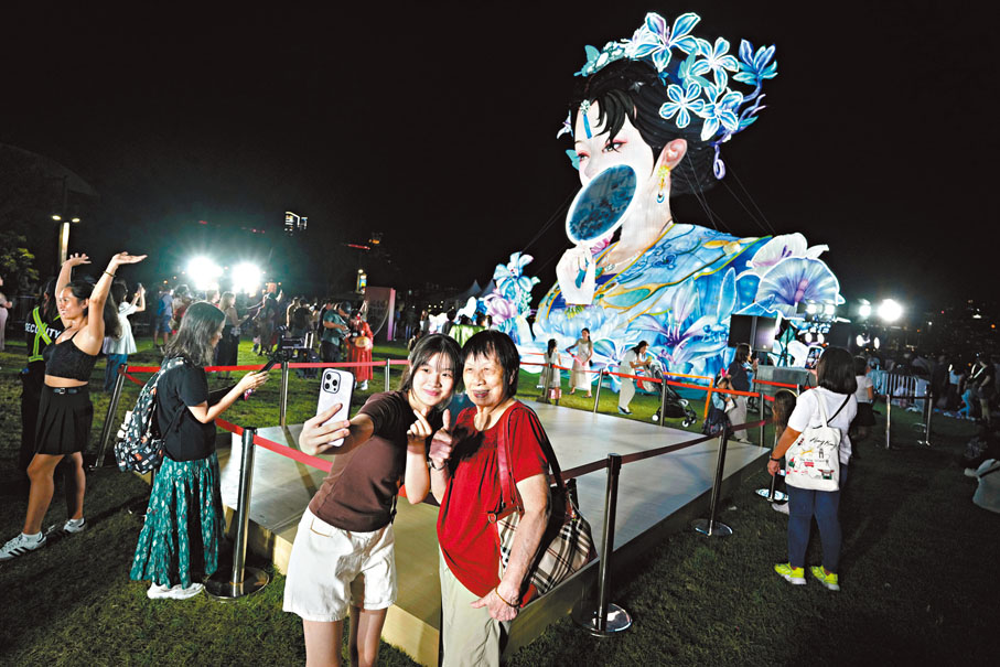 為慶祝中華人民共和國成立76周年,現正於西九文化區舉辦的「迎國慶·華服嘉年華」熱鬧開場,截至1日晚六時,入場人次已突破1萬。活動以「白天遊園、夜間賞燈」為特色,將華服走秀、花燈藝術與互動體驗結合,吸引大批市民與旅客參與。沿維港岸邊漫步,最醒目的莫過於「香江仙子」花燈組,亮燈後,花燈前很快聚滿人群,不少市民和遊客拍照留念,成為現場最受歡迎的打卡點。活動將持續至今日(2日)。●文:大公文匯全媒體記者 郭悅盈 圖:大公文匯全媒體記者 黃洋港