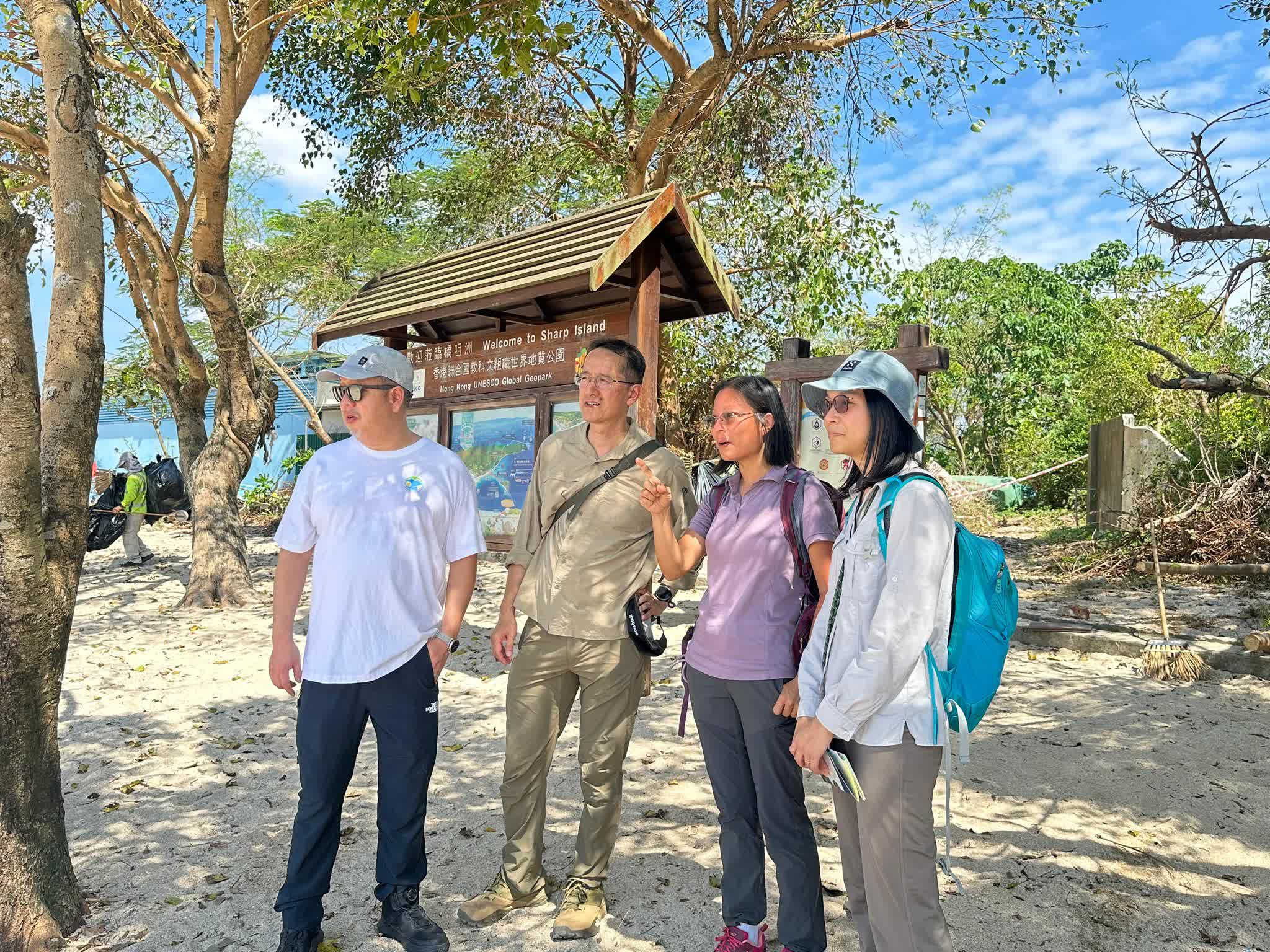 漁護署副署長黎存志同埋助理署長(漁業及海洋護理)朱振華昨日(4日)到橋咀洲視察現場情況。漁護署人員並在場向訪客派發宣傳單張,呼籲訪客尊重、愛護同埋欣賞自然,切勿採集、騷擾及傷害海洋生物。