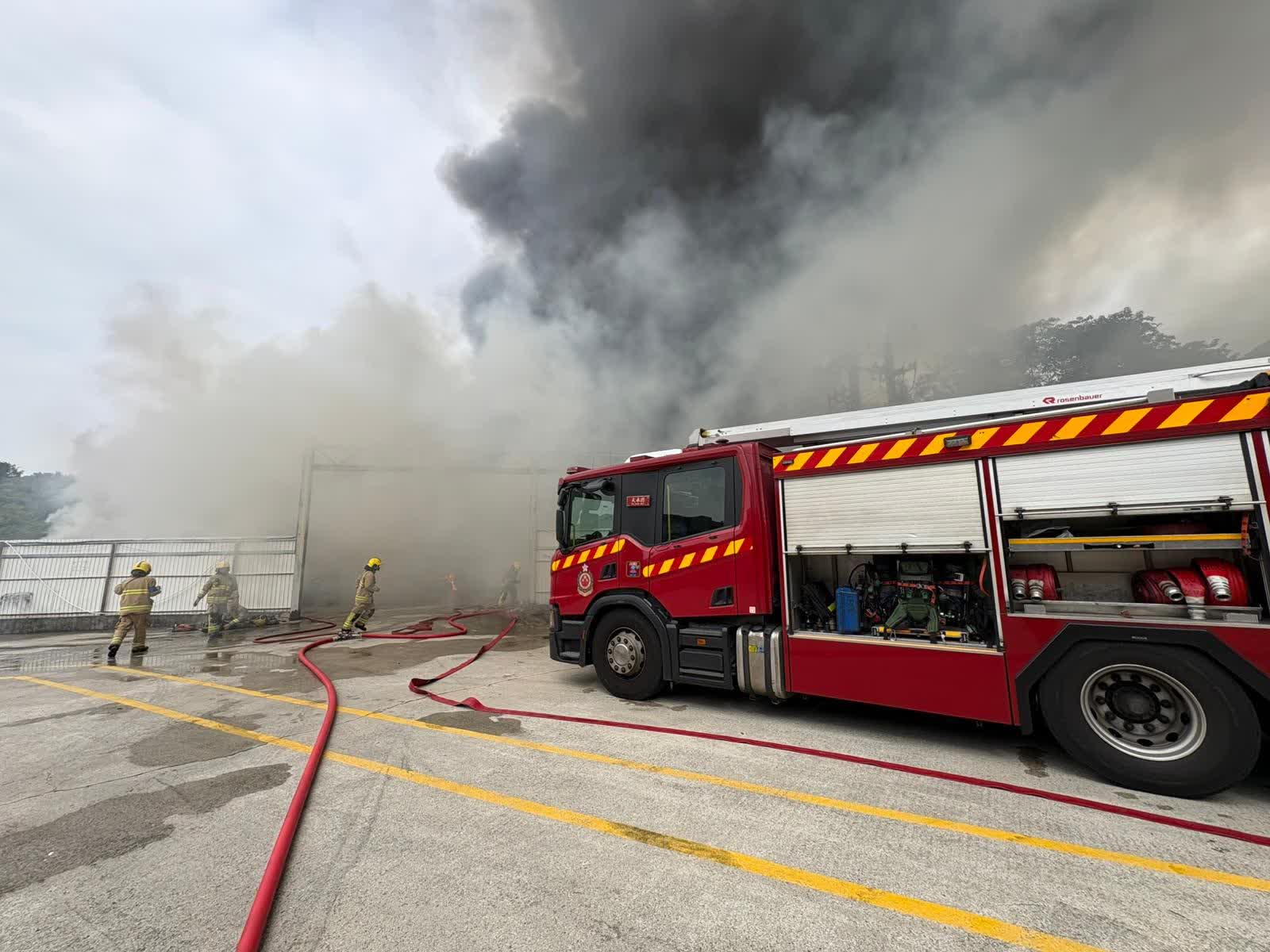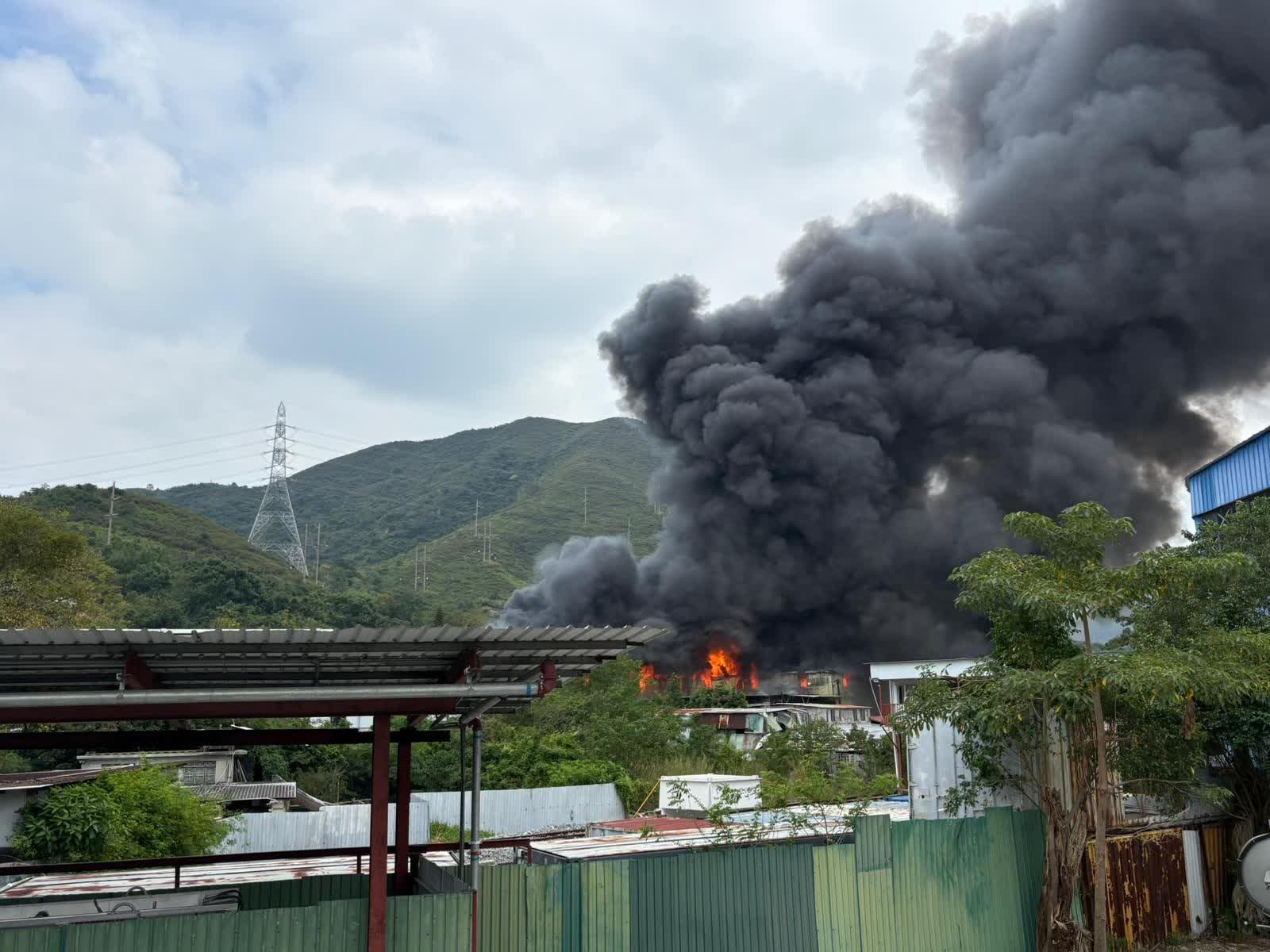香港文匯報訊(記者 蕭景源)今日(31日)下午1時18分,上水新田麒麟村一個放置音響器材的貨倉起火冒煙,期間大量黑煙升上半空,遠處清晰可見。