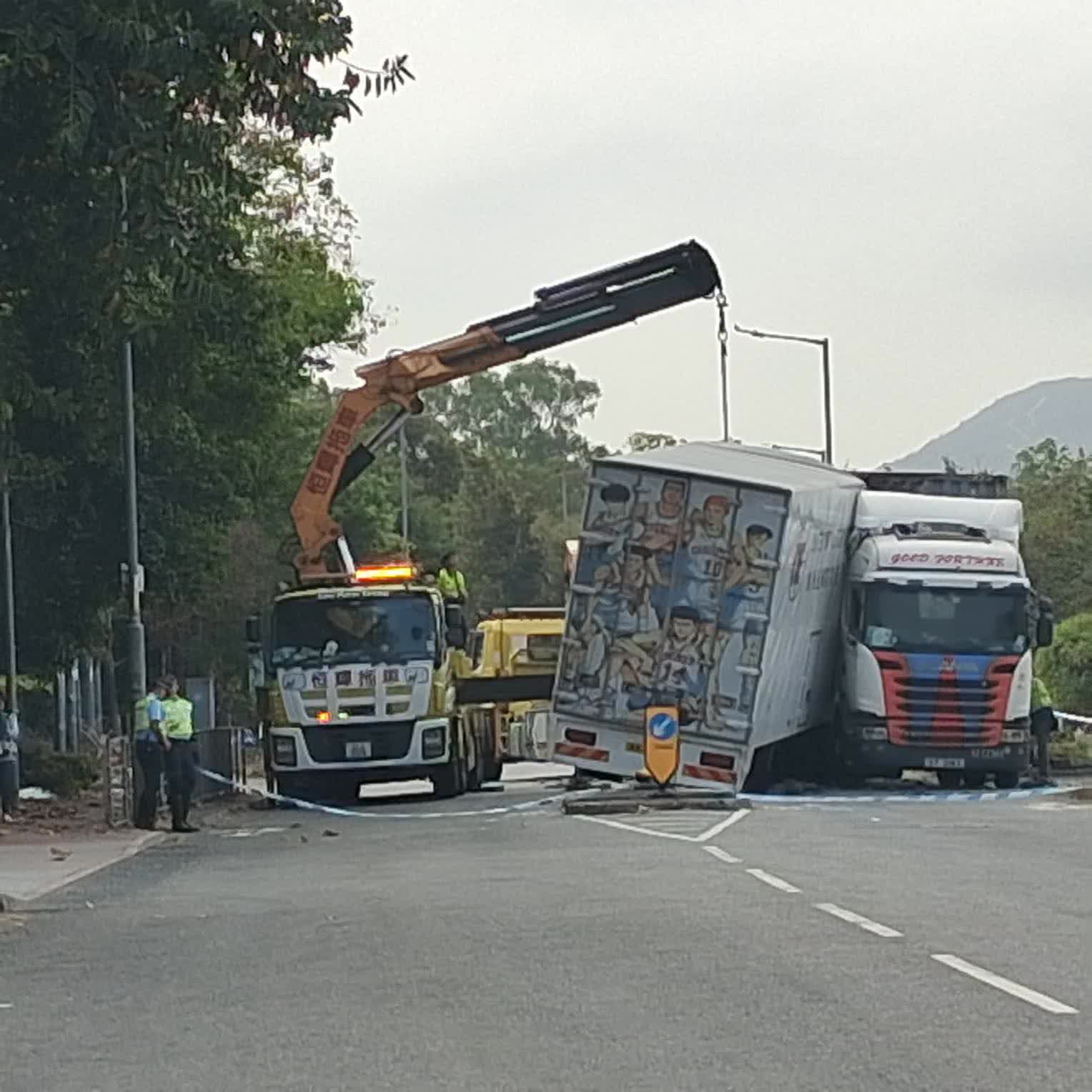 香港文匯報訊(記者 蕭景源)今日(24日)凌晨5時許,一輛中型貨車沿屏廈路往元朗駛至羅屋村附近時,懷疑失控向右剷上行人島越過對行線,與對行線駛至貨櫃車發生迎頭相撞意外,中型貨車31歲姓黎男司機受傷陷半昏迷被困車廂,貨櫃車69歲姓張男司機未有受傷及報警。消防員接報趕至使用工具將中型貨車司機救出,由救護車送往屯門醫院治理。警方正調查車禍原因,案件交由新界北總區交通意外調查隊第二隊跟進。