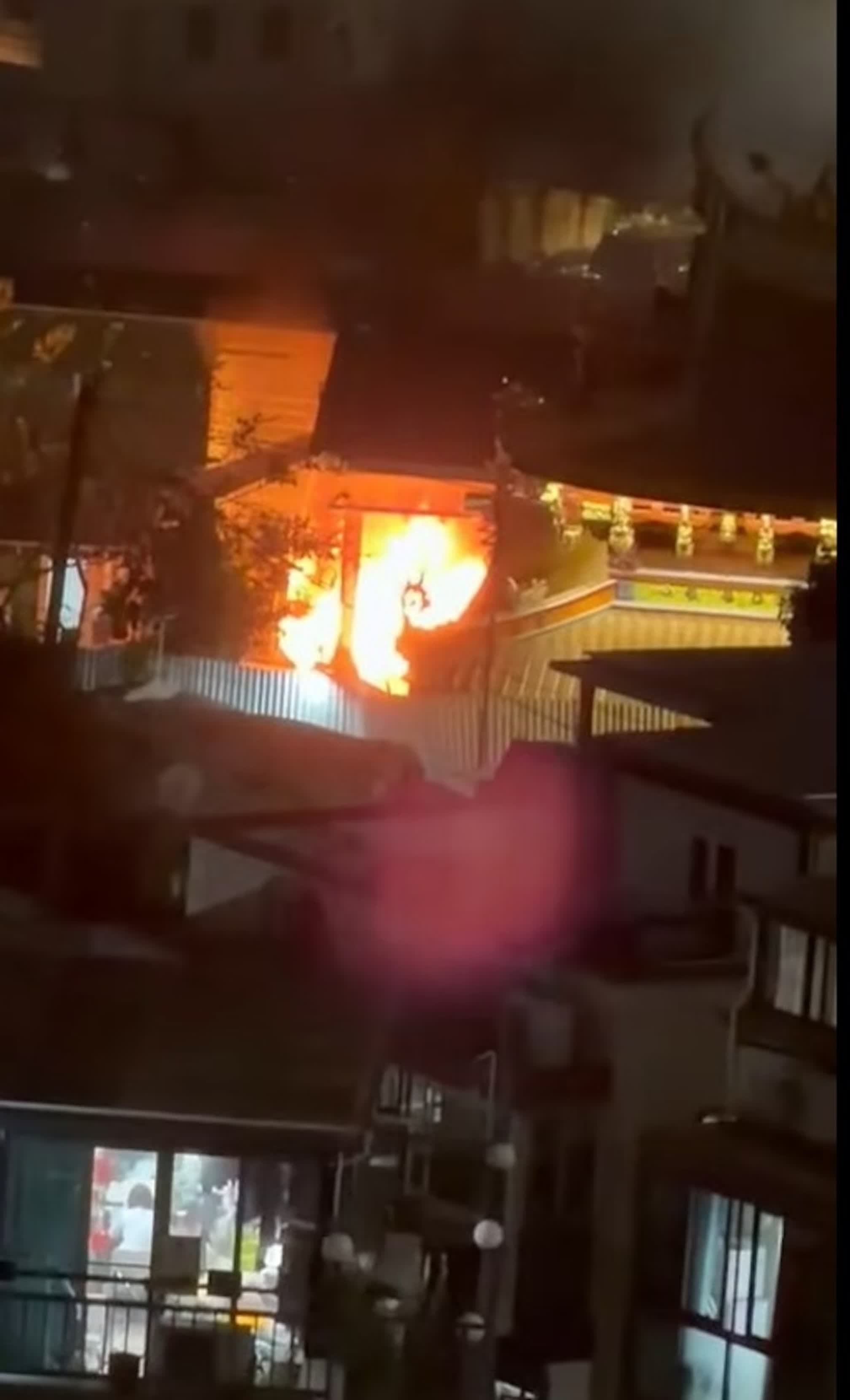 香港文匯報訊(記者 蕭景源)今日(8日)晚上約10時半,屯門和田邨旁邊的鳳山寺發生火警,期間一度傳出爆炸聲。期間寺內有人試圖救火,但不成功。消防其後趕抵迅速將火救熄,期間無人受傷。經調查,初步不排除有香燭意外燒着物品失火。