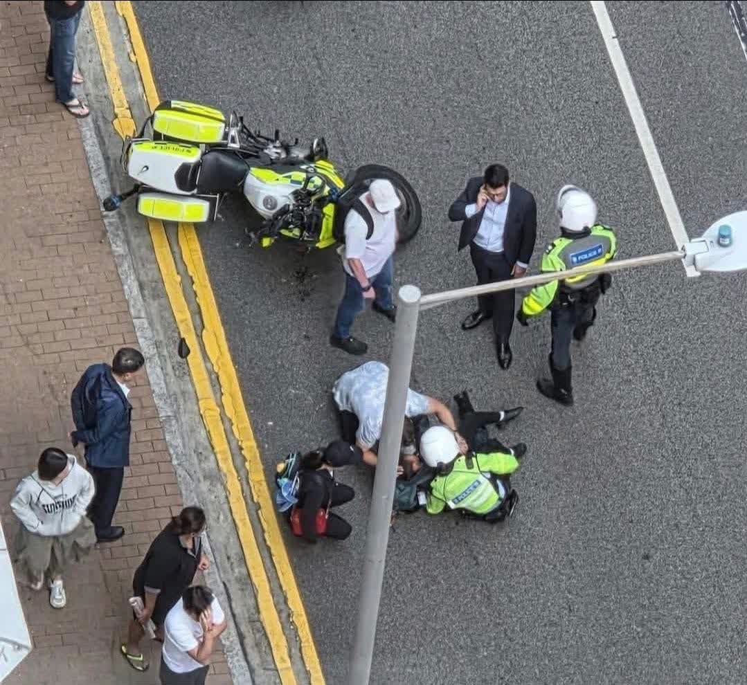 李童先被程駕駛的警察電單車尾箱碰到跌倒地上,隨後姓尹警員收掣不及,其駕駛的警察電單車撞向男童。意外中,姓尹警員左腳掌受傷,男童手指輕微骨折及擦傷,兩人同送往律敦治醫院接受治理,他們俱無生命危險,案件交由港島總區交通意外特別調查隊第一隊跟進。